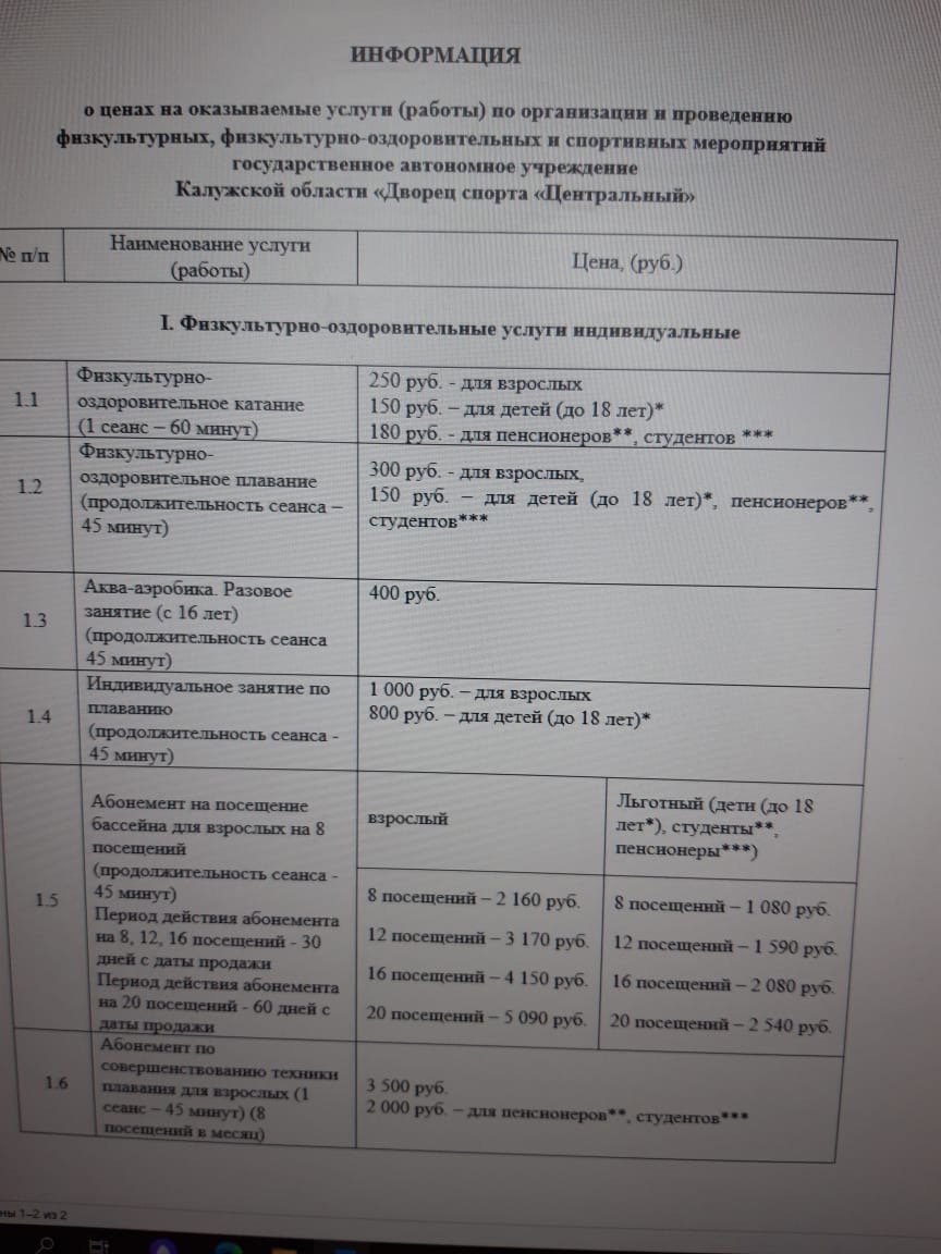 UPD. Калужский Дворец спорта вдвое снизил расценки на плавание и катание на коньках.