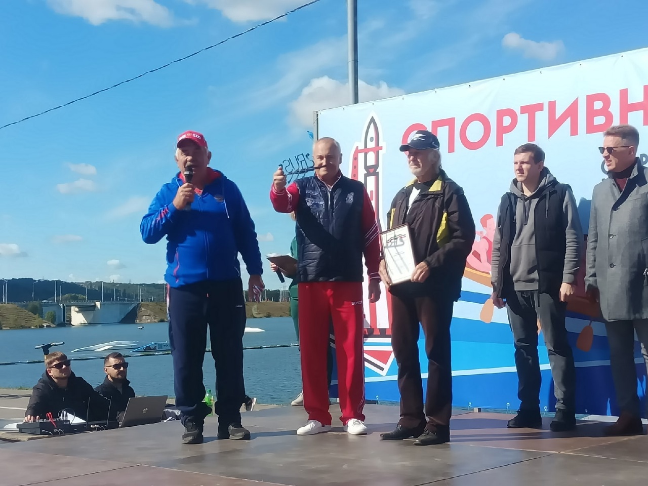 Министр спорта Калужской области Олег Сердюков наградил Почетной грамотой министерства основоположника гребного спорта в регионе Андрея Виноградова.