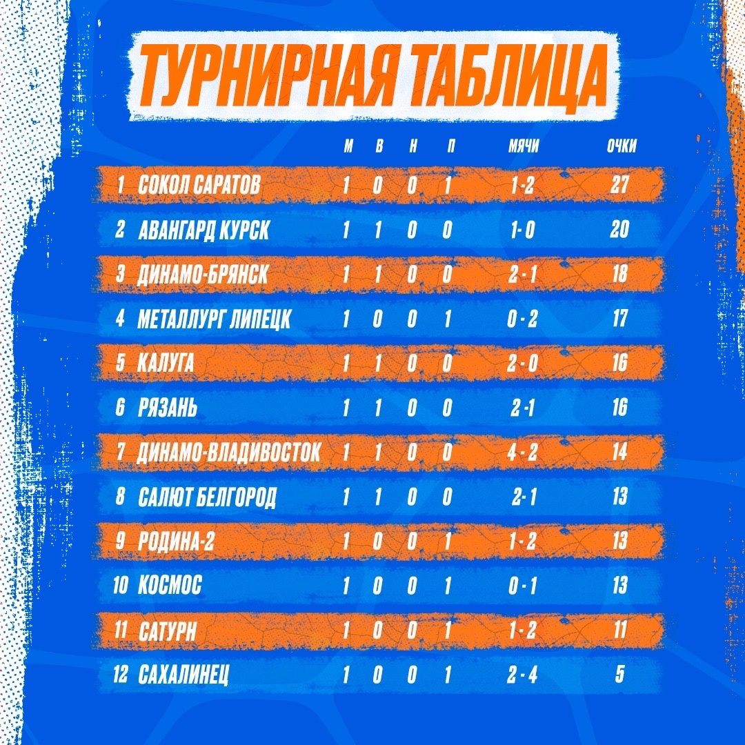 Турнирная таблица по состоянию на 7 апреля.
