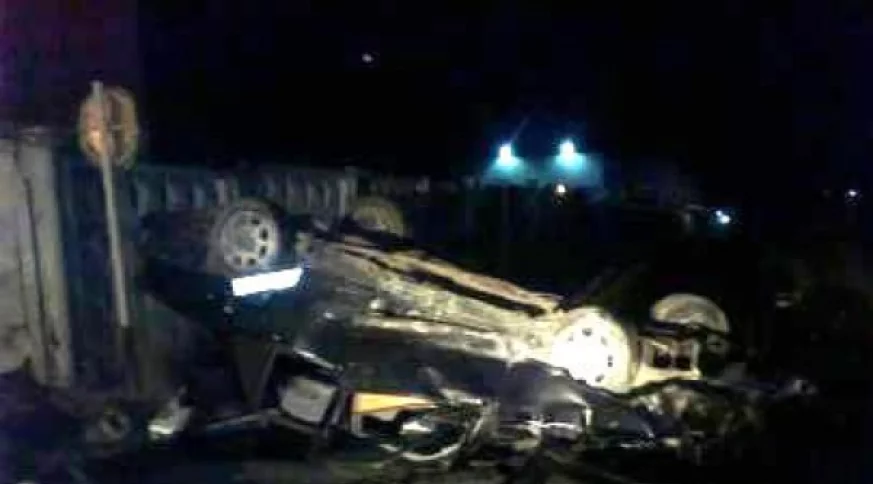 Машина перевернулась после столкновения.