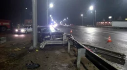 Машина врезалась в дорожное ограждение.