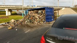 Грузовик с мусором перевернулся возле Гагаринского моста