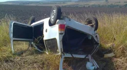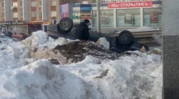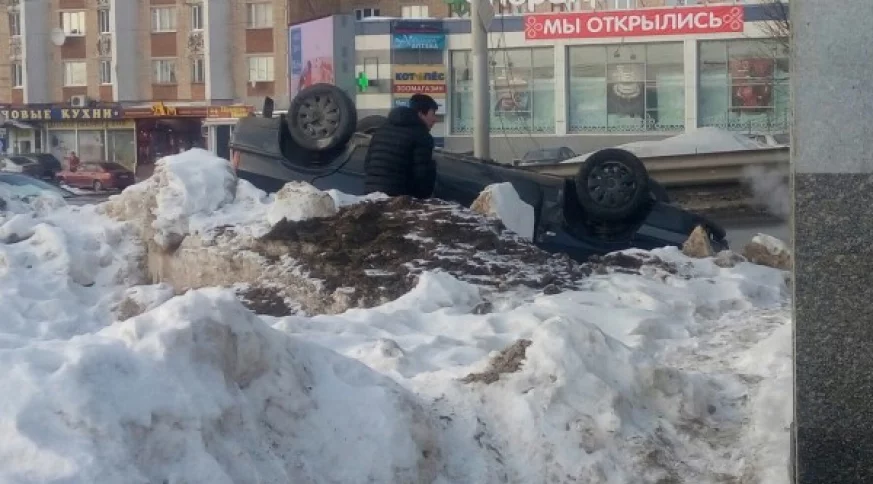 Водитель и пассажиры сами поставили авто обратно на колёса.