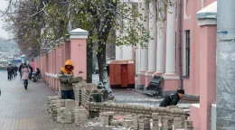 На улице Кирова начали восстанавливать забор, снесённый «Рендж Ровером»