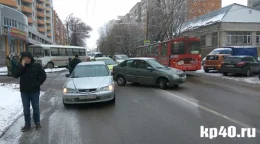Но несколько машин всё же разбились в Калуге на скользкой дороге.