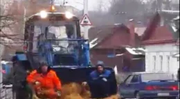 «Инновации» в Калуге: коммунальщики посыпали тротуар, сидя прямо в ковше