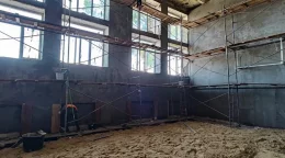 На данный момент практически завершены работы по выравниванию стен в огромном спортивном зале, рассказали 7 мая в правительстве Калужской области.