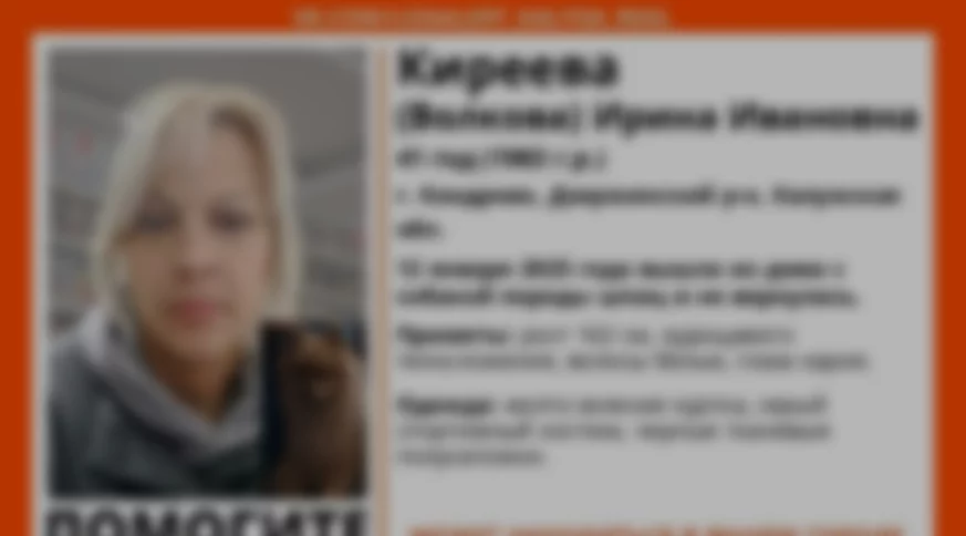 Ирина Киреева исчезла в городе Кондрово Дзержинского района 12 января.