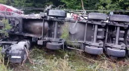 В Калужской области 45-летний водитель пострадал в перевернувшемся цементовозе