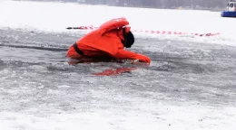 На Яченском водохранилище утопающего вытаскивали лыжами, веревками, куртками, палками а также дали ему спастить самому.