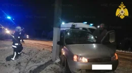 Водитель «Лады» врезался в столб в Кирове Калужской области