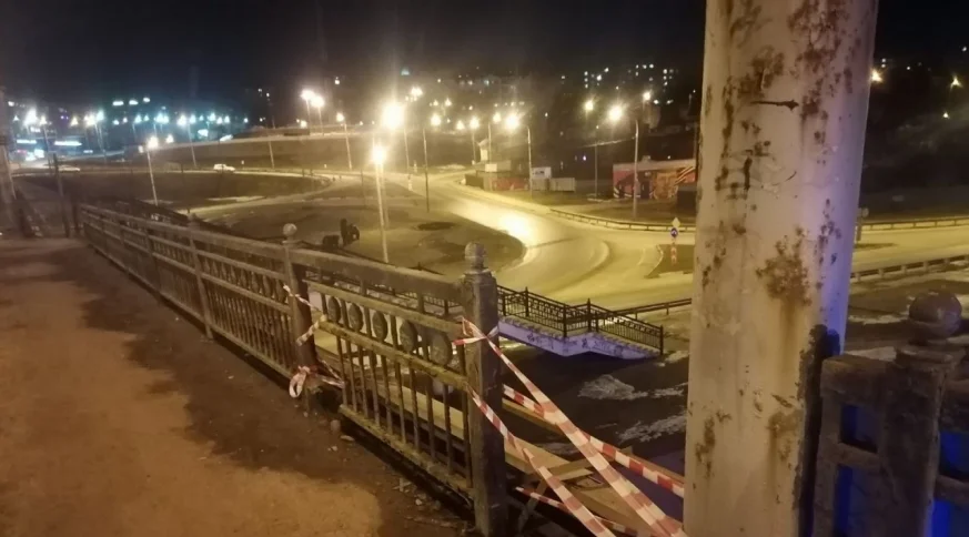 В Калуге дыру в ограждении Гагаринского моста закрыли сигнальной лентой