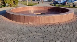 Вода на тротуаре там скапливается после каждого сильного дождя.