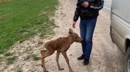 В Малоярославецком районе заметили детеныша лося без мамы.