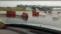 Слалом на окружной: ограждение ветром разбросало по дороге