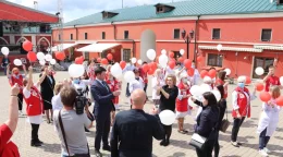 Годовщину отметили флэш-мобом, запустив в небо красные и белые шары.