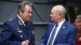 Глава городского самоуправления Александр ИВАНОВ и Владимир КОВАЛЁНОК осмотрели экспонаты выставки «В Калугу к Циолковскому».