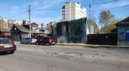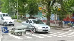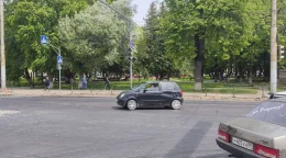 «Мерседес» въехал в яму на улице Белинского.