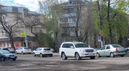 Дорожники держат в голове шествие выпускников.