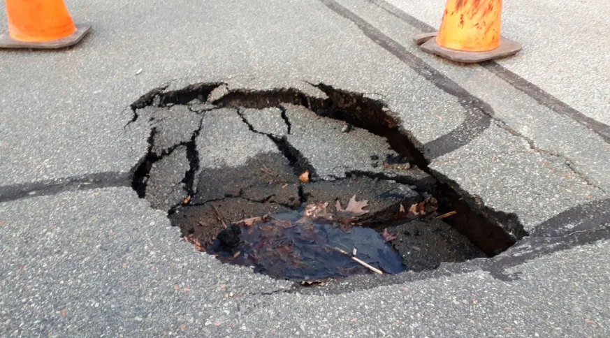 Асфальт размыло в апреле.