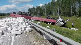 Очевидцы сообщают, что водитель большегруза уходил от столкновения с легковушкой.