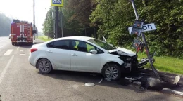 Женщина на иномарке снесла светофор на въезде в Калугу