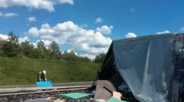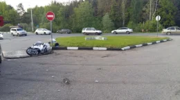 Машина завалилась набок и снесла около 100 метров ограждения.