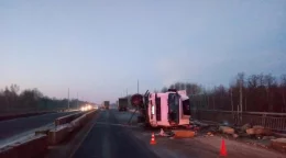Микроавтобус перевернулся на заснеженной дороге