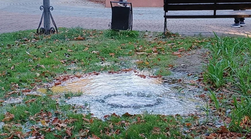 Утром во вторник, 1 октября, потоки воды текли из сквера Ленина.