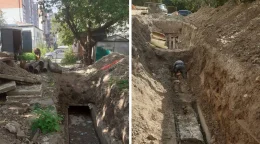 В районе дома №10/15 на перекрестке со Старичковым переулком ведутся работы по замене теплосетей.