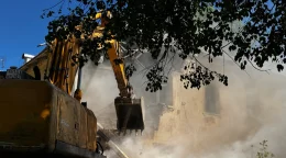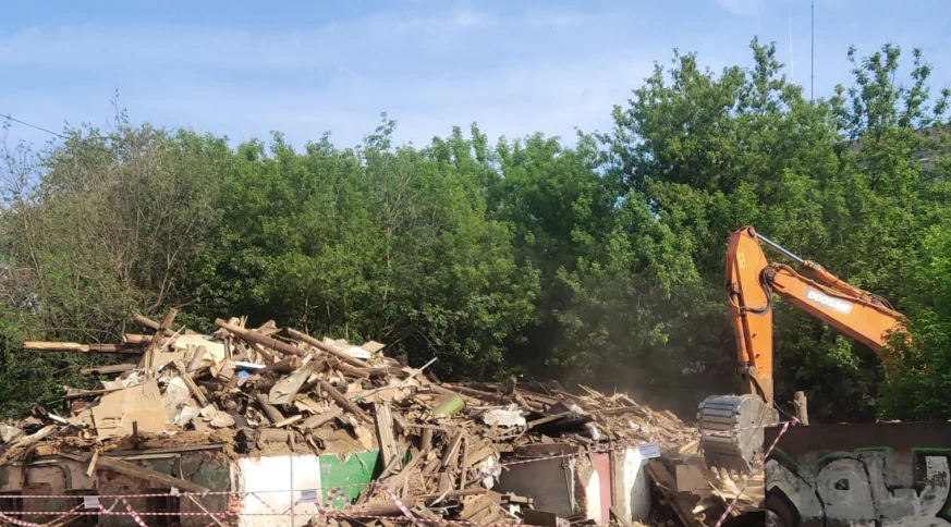 Ранее дом №7, расположенный в районе отделения полиции, был признан аварийным и расселен.