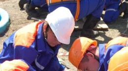 ...Вообще деб.лы что ли? Ограждать места проведения работ их не учили?