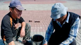 ...Нацальника! Зачем ругать? Мы ленточка натянуть вся яма, низ - верх.