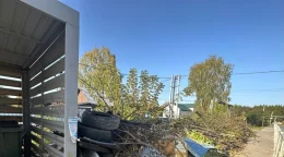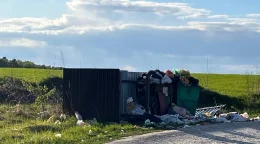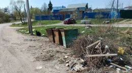 Вся контейнерная площадка завалена.