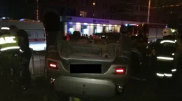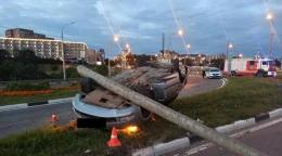 В Калуге «Шкода» снесла столб и перевернулась
