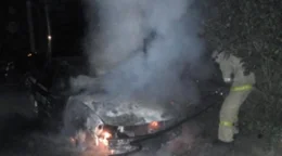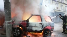 После бокового удара автомобиль ВАЗ 2115 вылетел в кювет.