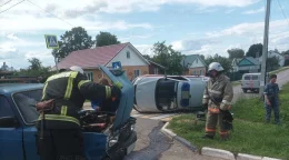 В Калужской области «Лада» завалилась на бок после столкновения с автомобилем «ВАЗ»