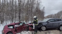 Рано утром в Калужской области на заснеженной трассе «Девятка» протаранила «Ниссан»