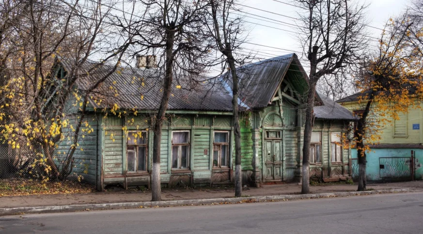 Это одно из двух сохранившихся в Калуге зданий в стиле деревянного модерна, построенное в 1910 году губернским инженером и архитектором Александром Яковлевым.
