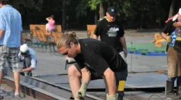 ...Вообще деб.лы что ли? Ограждать места проведения работ их не учили?