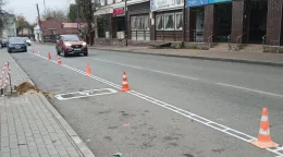 На участке между улицами Достоевского и Дзержинского отделили для парковки крайнюю правую полосу.