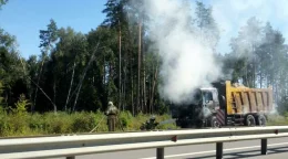 У дорожников, наносящих разметку, вспыхнул кузов.