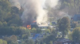 Пострадавших нет, а пожарные продолжают работу на месте ЧП.