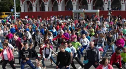 За это время колонна сделала 4 круга вокруг площади Победы.