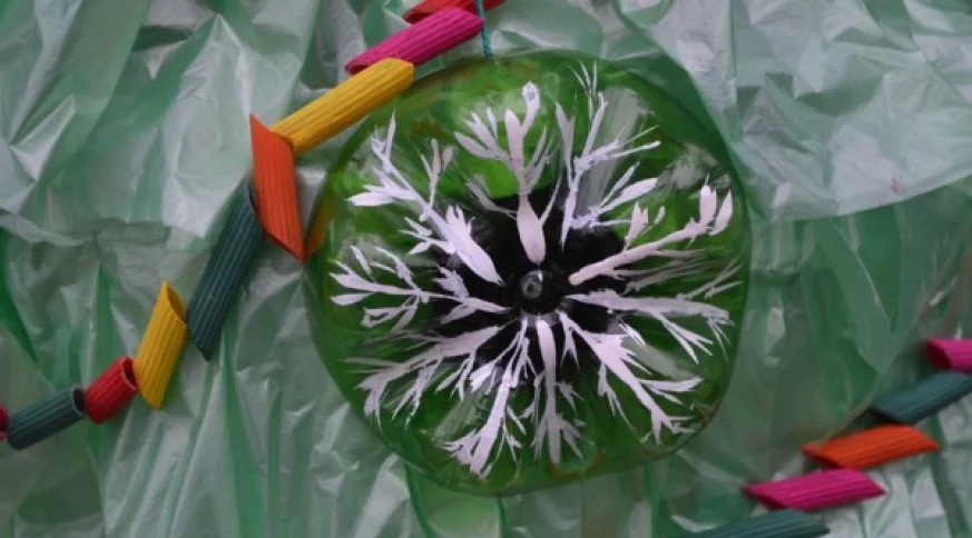Зелёную красавицу смастерили из книг, фантиков, упаковок от яиц и холодильника.