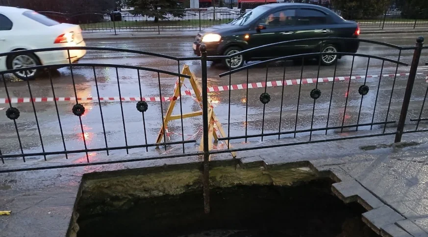 Провал образовался в субботу, 11 января, на улице Карла Либкнехта в районе перекрестка с улицей Ленина.
