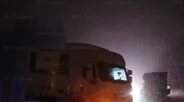 Две фуры столкнулись ночью на заснеженной трассе под Калугой