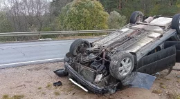 В Калужской области водитель пострадал в перевернувшейся легковушке