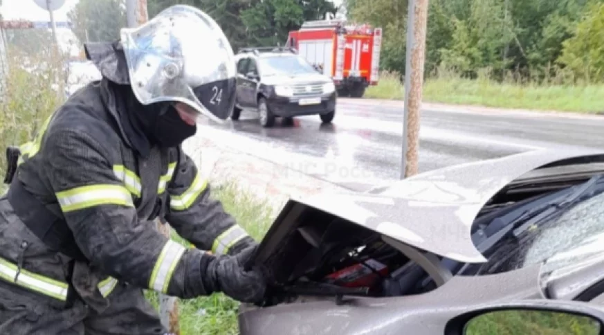 В тот же день в Мосальском районе перевернулся «Рено Меган».