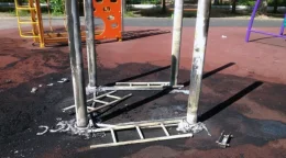 Полиция разыскивает вандалов, которые подожгли игровой комплекс на площади Победы.